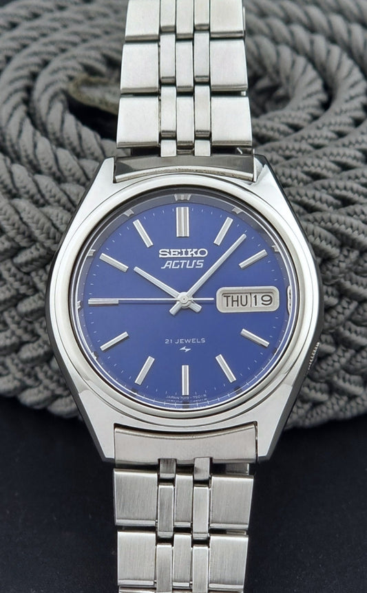 Vintage Seiko Actus Wristwatch 7019-7430 Blue dial 1978