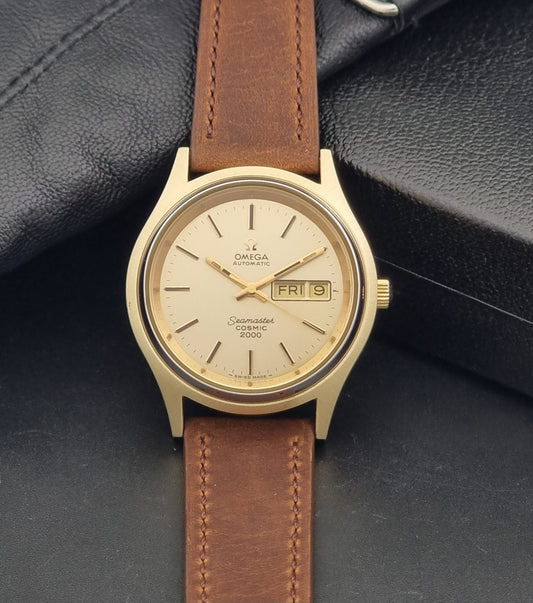 Vintage Omega Wristwatch Seamaster Cosmic 2000 Jumbo 166.129 Gold Cap 1972